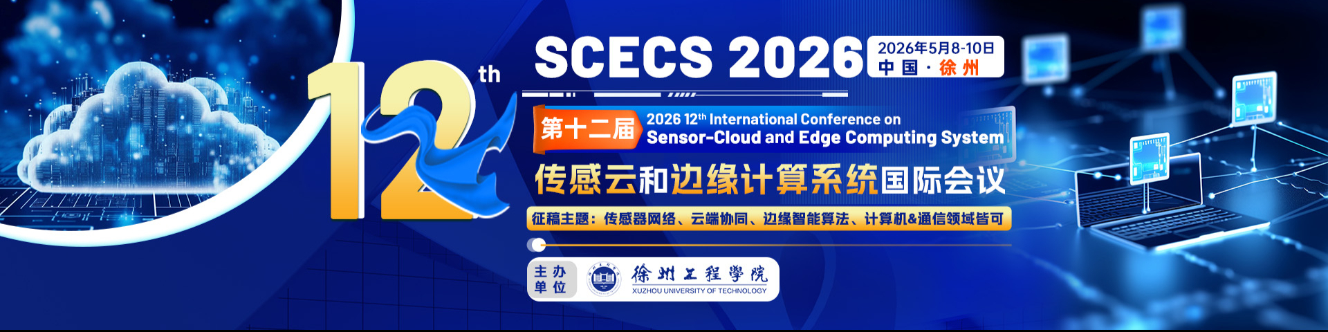 The 12th International Conference on Sensor-Cloud and Edge Computing System (SCECS 2026) is scheduled to take place on May 8-10, 2026 in Xuzhou, China. The conference will primarily focus on the fields of sensor-cloud and edge computing system, providing an academic platform for experts, scholars, engineers, and professionals from various educational institutions, research organizations, enterprises, and establishments locally and abroad. This platform aims to facilitate the sharing of academic research findings, exploration of cutting-edge engineering issues, as well as discussions on current opportunities and challenges. Through this concerted effort to promote international cooperation and communication while advancing the industrialization of scientific research results.